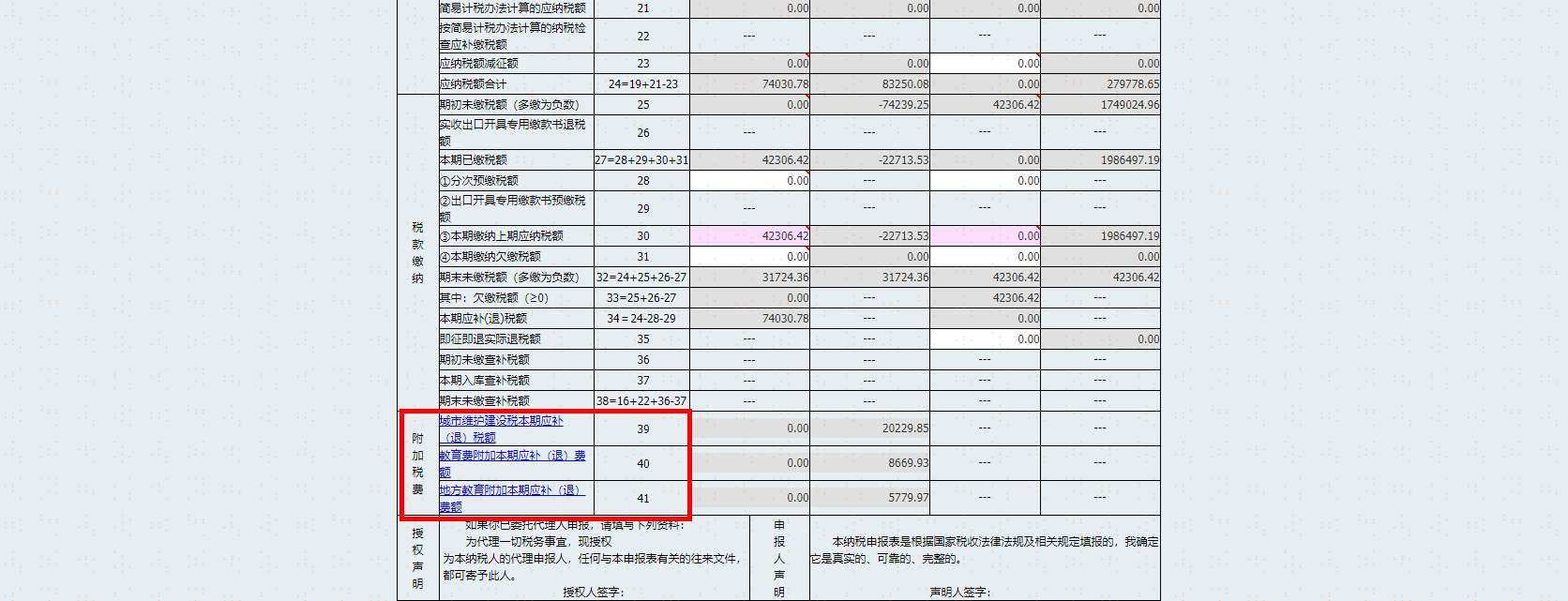 根据已填写的附表,自动生成主表数据,纳税人通过《增值税及附加税费申报表(一般纳税人适用)》表点击39、40、41行链接至附列资料