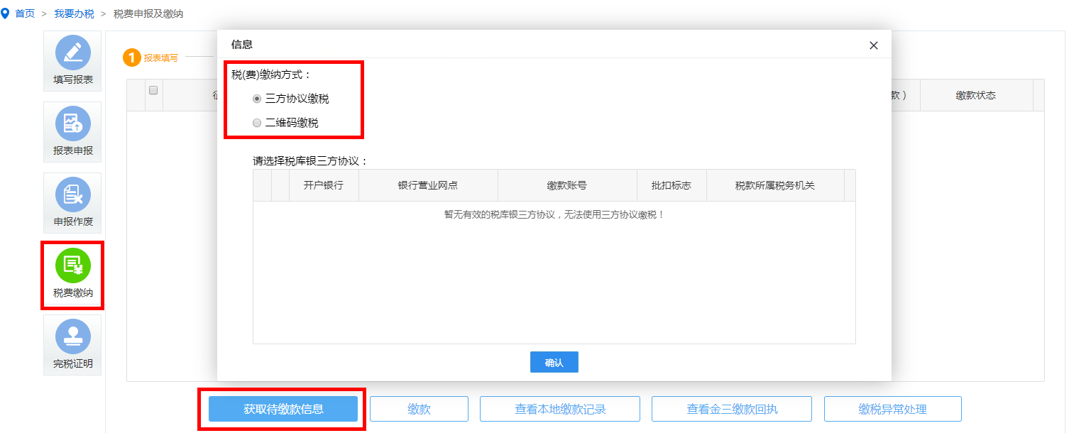 2.缴款方式可选择三方协议缴税或二维码缴税。