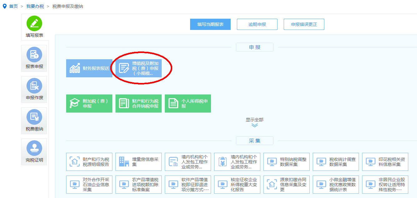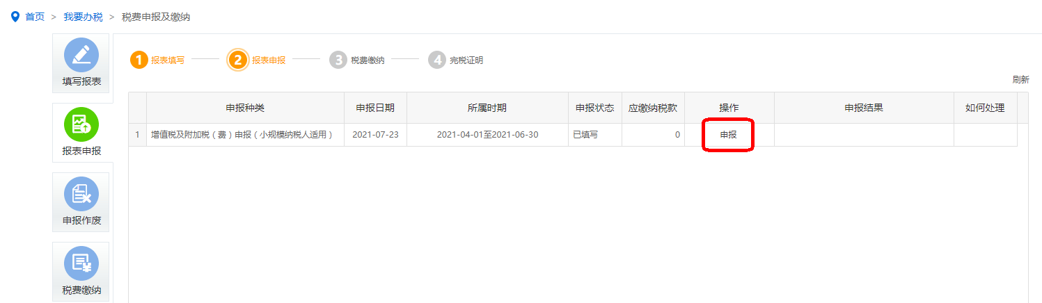 1.点击左侧“报表申报”按钮