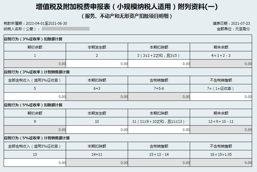 4.根据纳税人实际生产经营情况,可填写《增值税及附加税费申报表(小规模纳税人适用)附列资料(一)(服务、不动产和无形资产扣除项目明细)》。