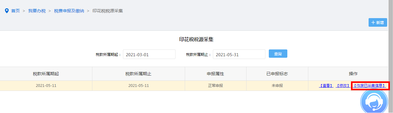 点击【作废已采集信息】按钮可作废此税源信息重新采集。