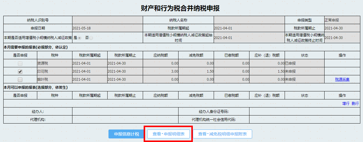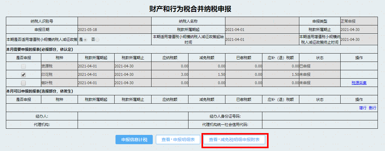 点击【查看·减免税明细申报附表】可查看减免明细信息。