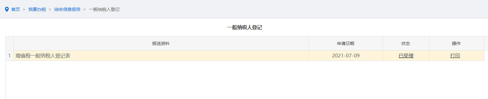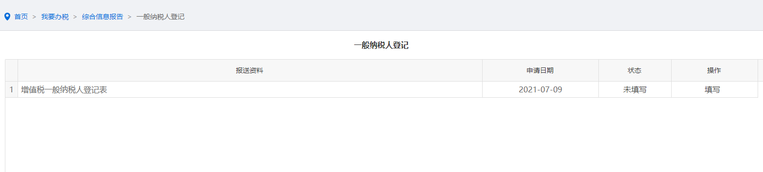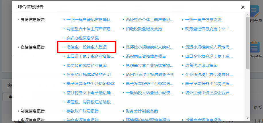 首页→〖我要办税〗→〖综合信息报告〗→〖资格信息报告〗→〖增值税一般纳税人登记〗