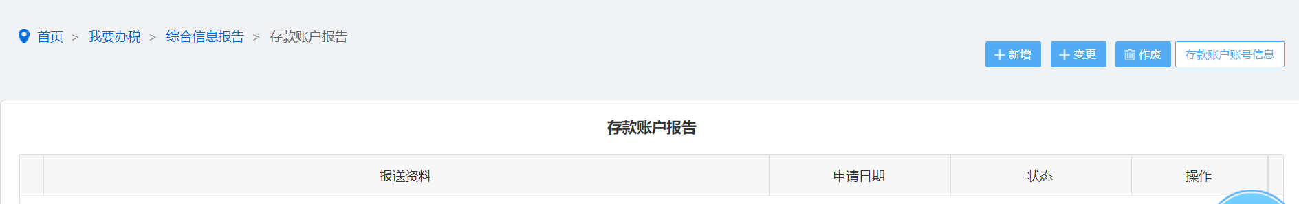 首页→〖我要办税〗→〖综合信息报告〗→〖制度信息报告〗→〖存款账户账号报告〗