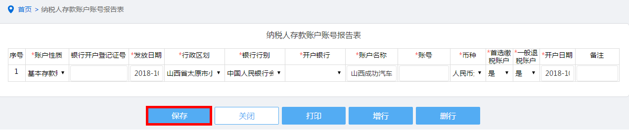 纳税人点击存款账户账号报告进入,点击“新增报告”按钮,手工录入进行保存。
