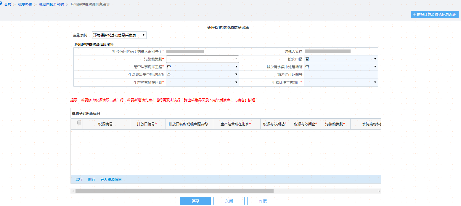 (1)采集表主表“环境保护税基础信息采集表”填写