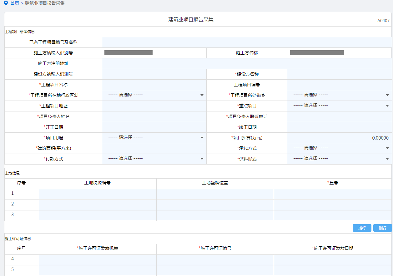 首页→〖我要办税〗→〖综合信息报告〗→〖税源信息报告〗→〖建筑业项目报告〗