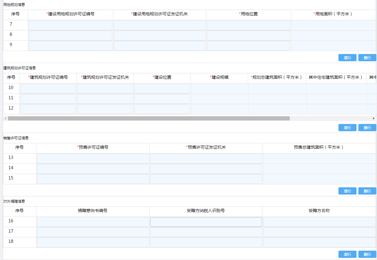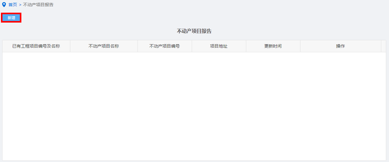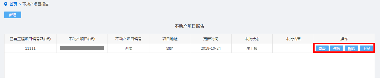 纳税人点击不动产项目报告进入,点击“新增”按钮,手工录入进行保存。如图