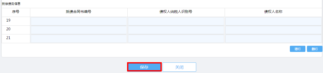 保存成功后可在页面看到记录,可以点击“查看”按钮查看保存信息、“修改”按钮对保存信息修改、“删除”按钮删除当前选中的记录、“上报”按钮将该条记录信息推到税务人端,如图