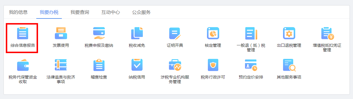 1.登录成功之后,首页点击【综合信息报告】业务按钮。