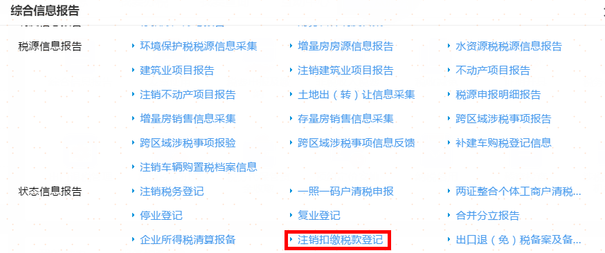首页→〖综合信息报告〗→〖状态信息报告〗→〖注销扣缴税款登记〗→填写