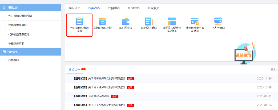 2.每个自然月代开不超过3次,每个自然年度不超过12次,纳税人在该限定范围开具最后一张发票时,系统提示“您发生涉税业务较多,建议您到主管税务机关办理税务登记,领取发票自行开具”。
