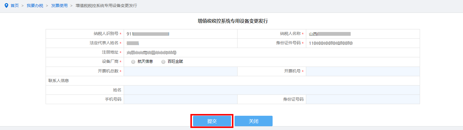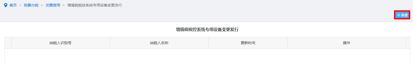 〖首页〗→〖发票使用〗→〖增值税税控系统专用设备变更发行〗
