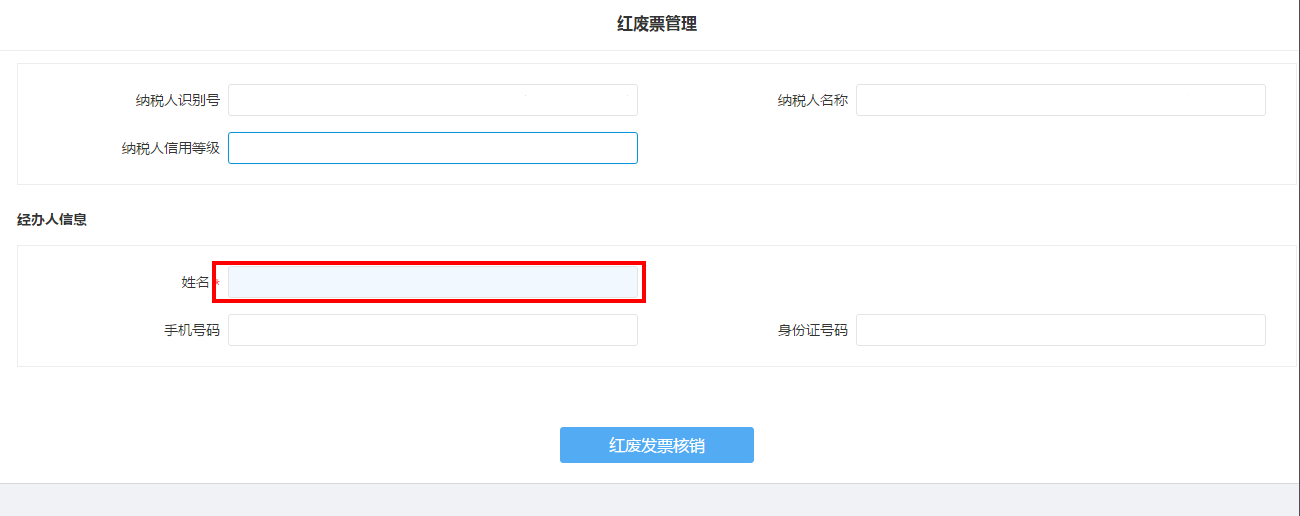 2.进入红废票管理页面,双击姓名一栏在弹框中选择要查询的经办人信息。