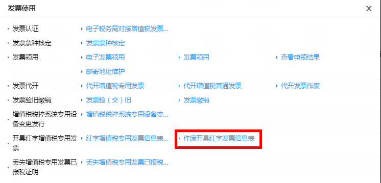 首页→〖我要办税〗→〖发票使用〗→〖开具红字增值税专用发票〗→〖红废票管理〗→进入页面