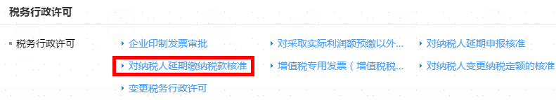 首页→〖我要办税〗→〖税务行政许可〗→〖延期缴税〗