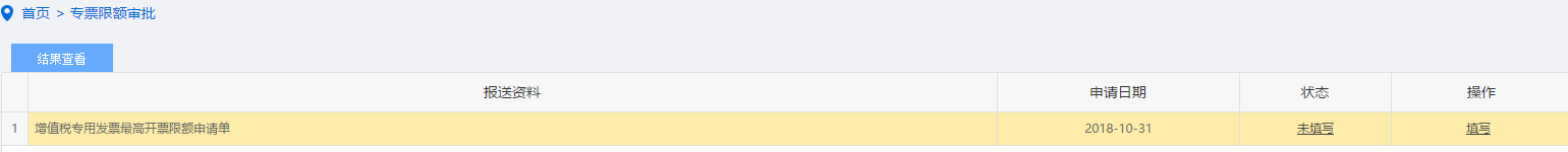 3.待《增值税专用发票最高开票限额申请单》填写完成后,系统将待办任务传到核心征管系统。由税务局进行后续审批。