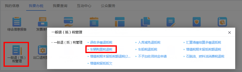 首页→〖我要办税〗→〖一般退(抵)税管理〗→〖车辆购置税退税〗