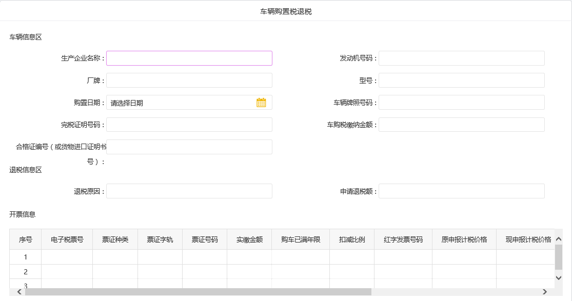 1.首页点击【一般退(抵)税管理】业务按钮,选择“车辆购置税退税”进入,如图