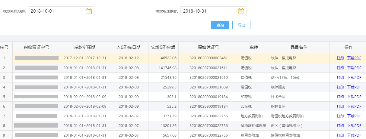 通过此功能,纳税人可查询在一定时期内缴款开具完税证明情况。
