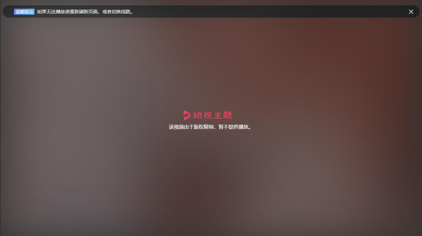主题后台-频道设置-视频详情/播放页-版权处理-选择开启后将下架全站所有视频