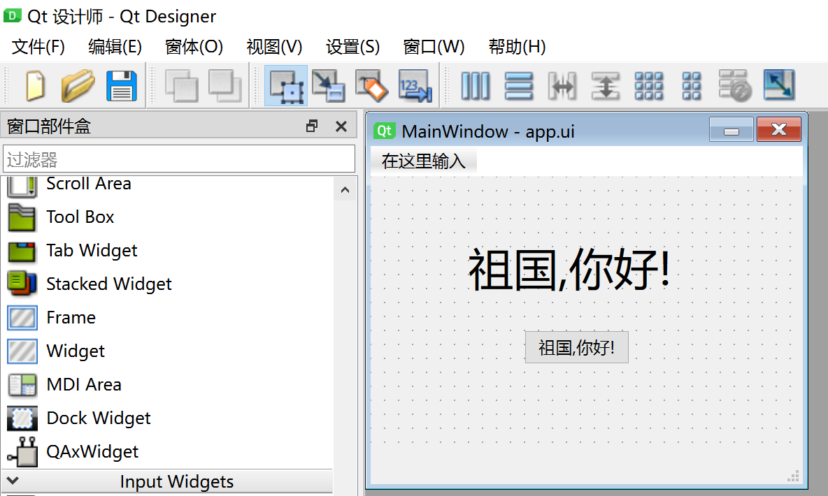 随意绘制界面 保存至 `C:\qtefun_learn\app.ui`