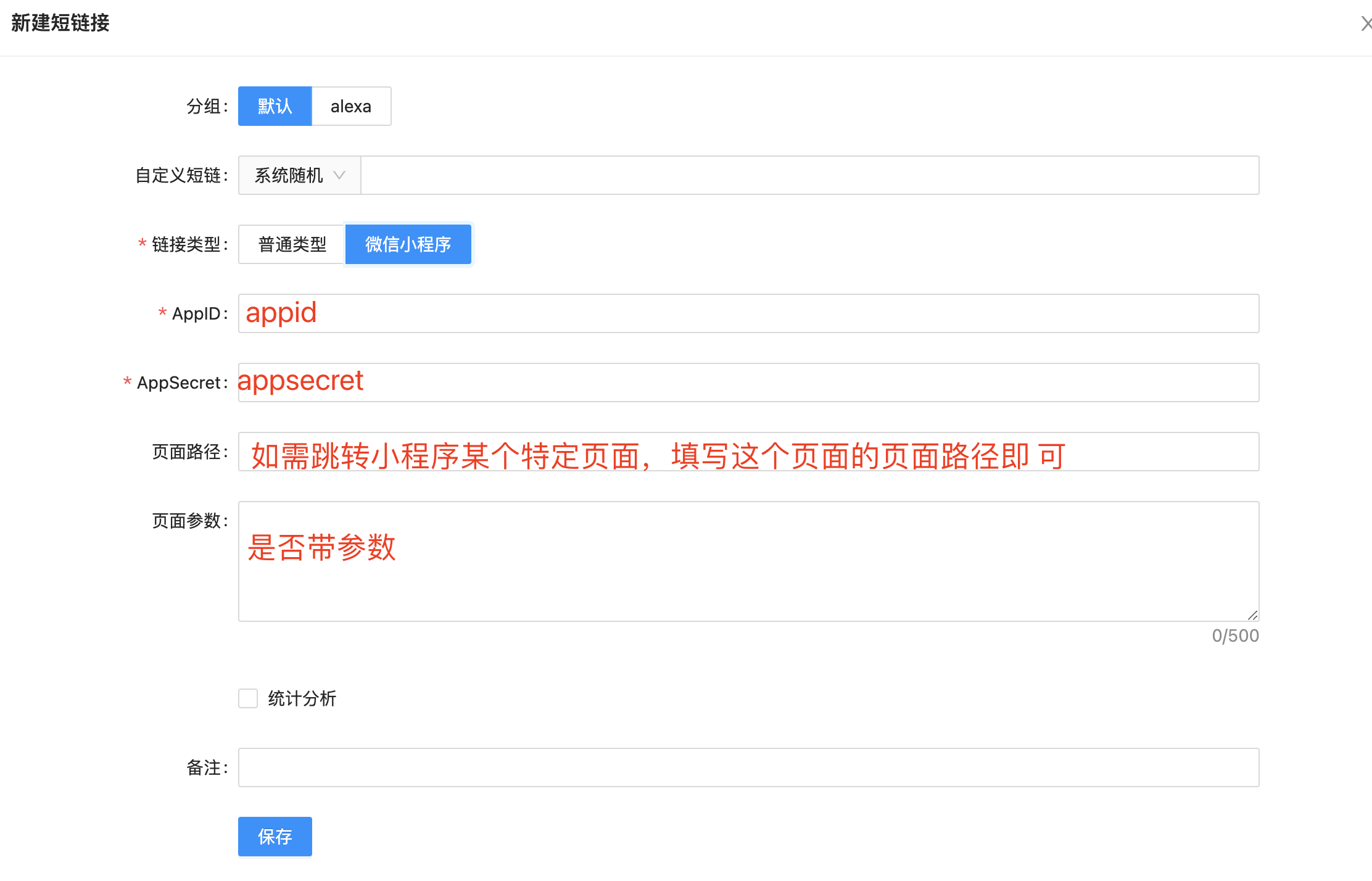 一、创建跳小程序首页链接,放APPID和APPSECRET即可,路径为空就默认跳转小程序首页,