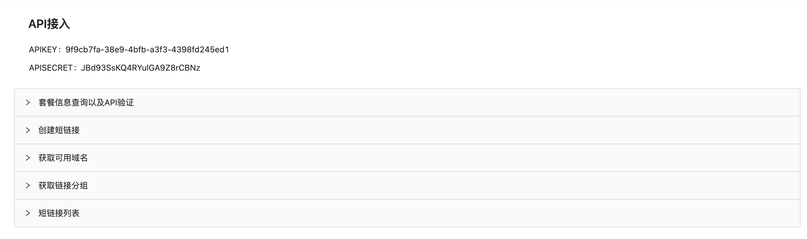 #### **如何接入短链接的API** 互道推广为每个平台注册用户都分配了API的KEY和密钥,通过KEY和密钥以及查看接入的开发文档,即可顺利接入我们平台的API功能来开发  我们的API接口支持短链接也同时支持小程序链接,具体的接入方法,请查看下方链接 开放API接 入:https://dwz.tuilian.com/#/apis