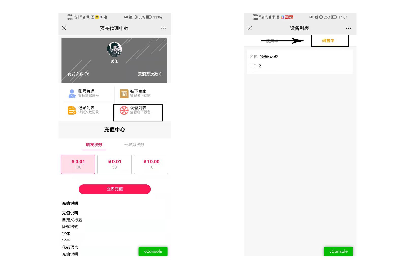 预付款代理如何查看设备:如下如所示: