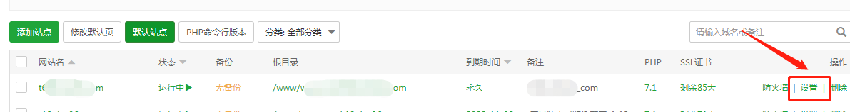 2、首页看不到可以点击【设置】去查看php版本,如下图所示