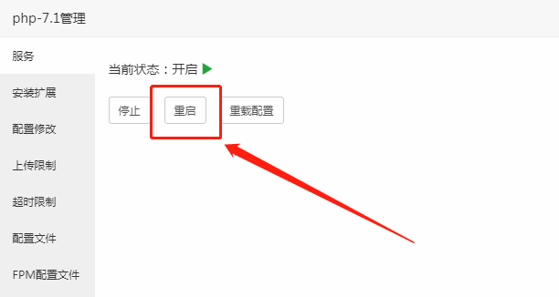 第三:点击重启php,如下图所示