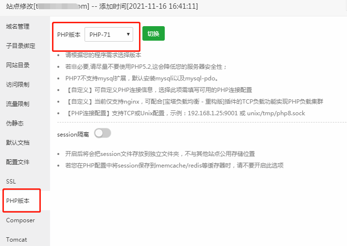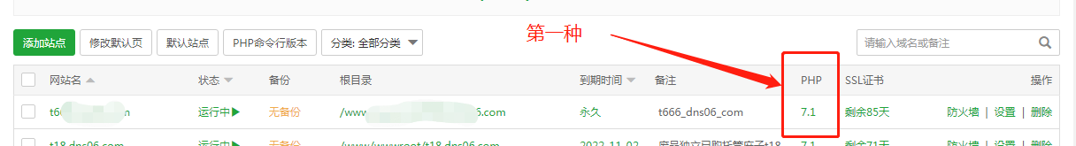第一:首先查看站点域名是php几点几,如下图所示