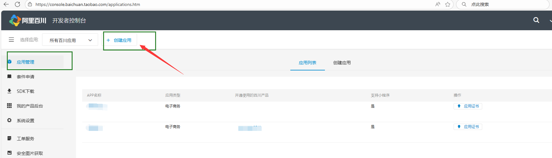appkey获取:在百川后台(如下图)