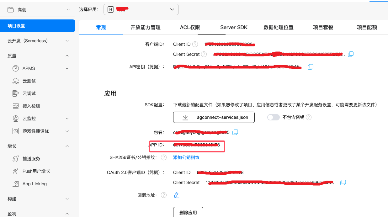 4、配置鸿蒙推送参数信息