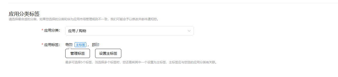 2、以下是“应用分类标签选择”相关信息,其他应用信息根据自己的应用填写。