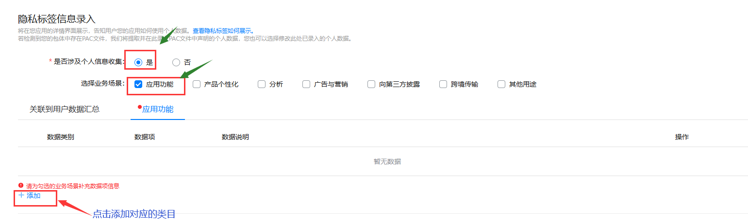 6、隐私标签信息录入