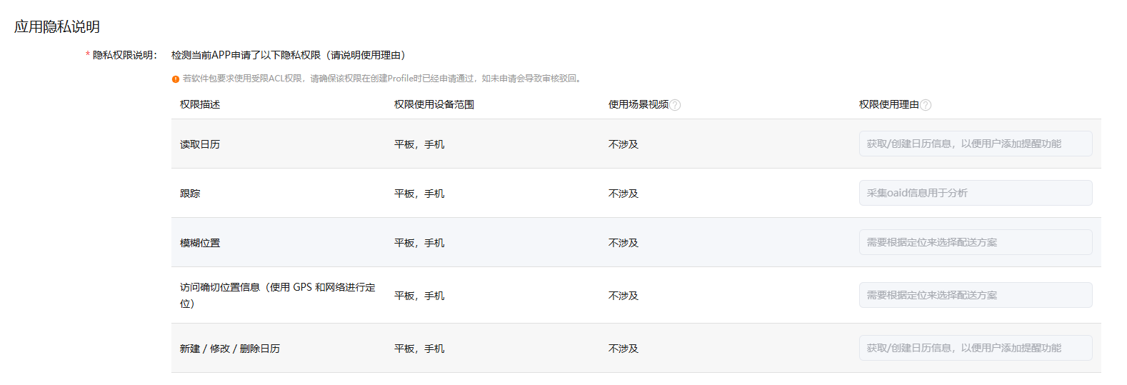 5、应用隐私说明