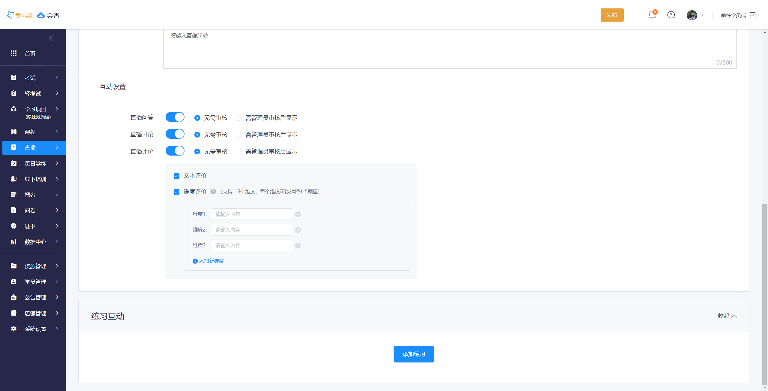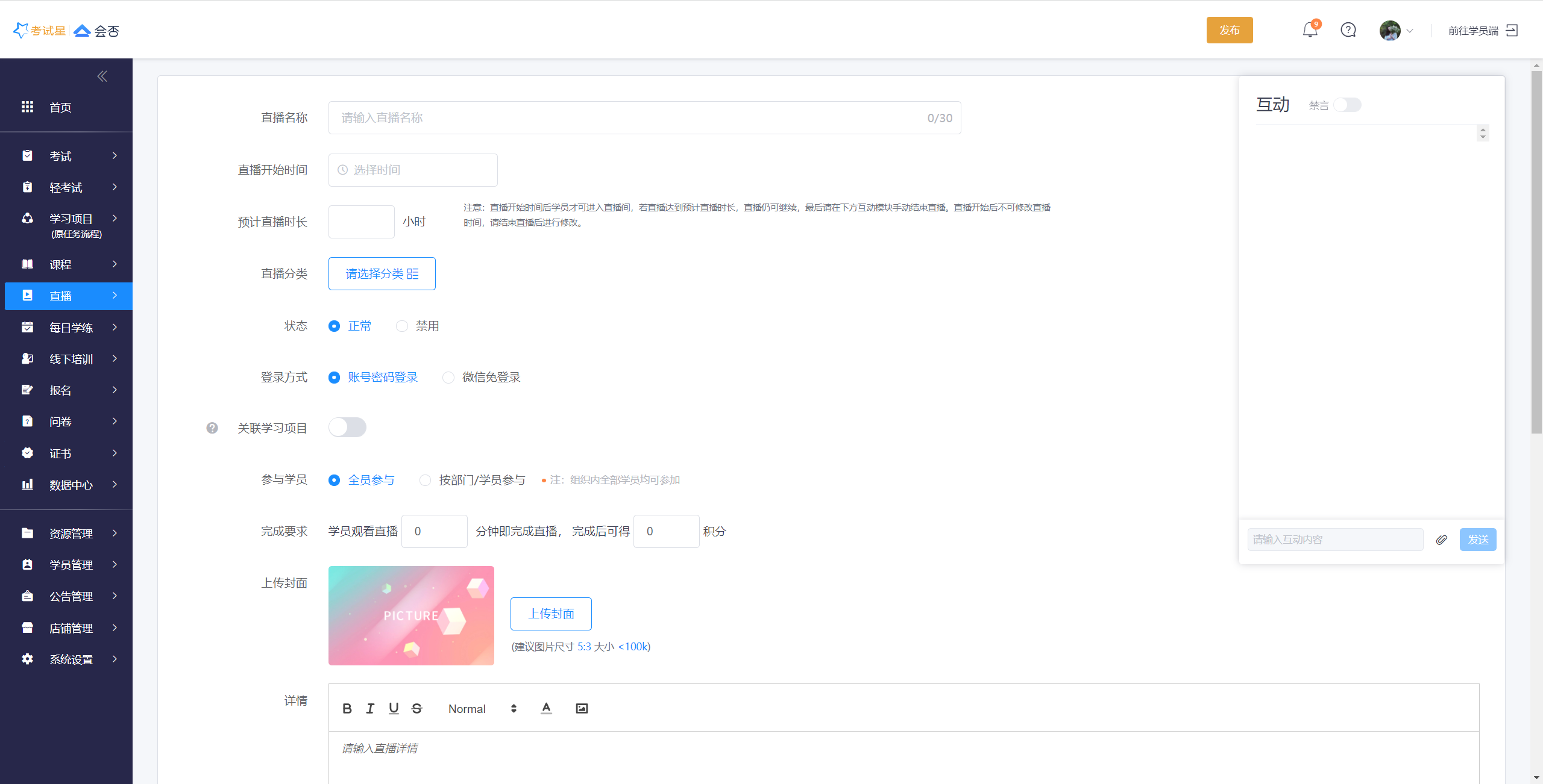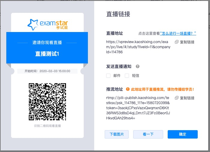 **直播地址**: 给学员使用,学员可通过此链接访问直播间