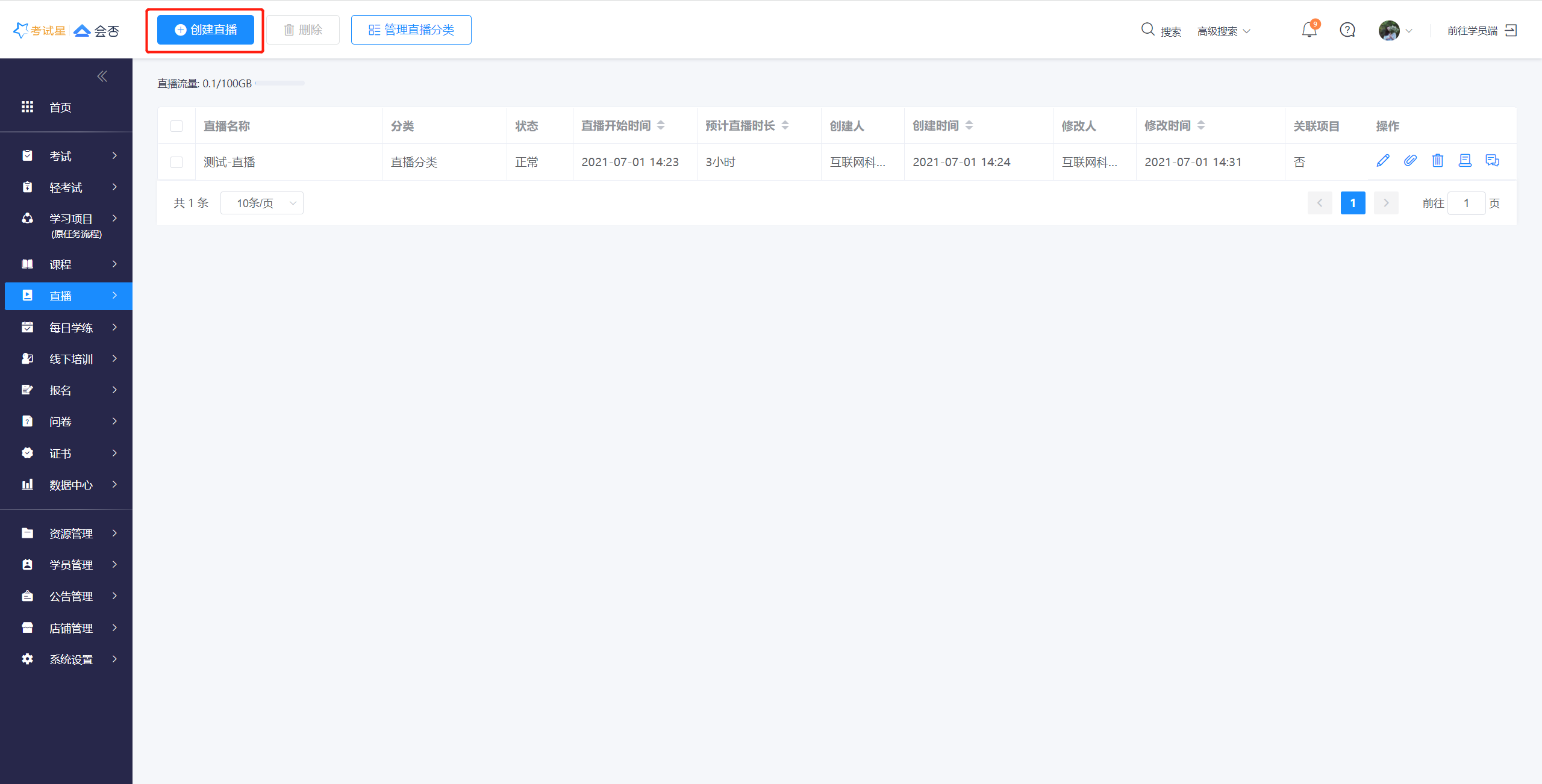 注意:如需使用多个分类对直播进行管理,请务必在“**管理直播分类**“中进行预设!