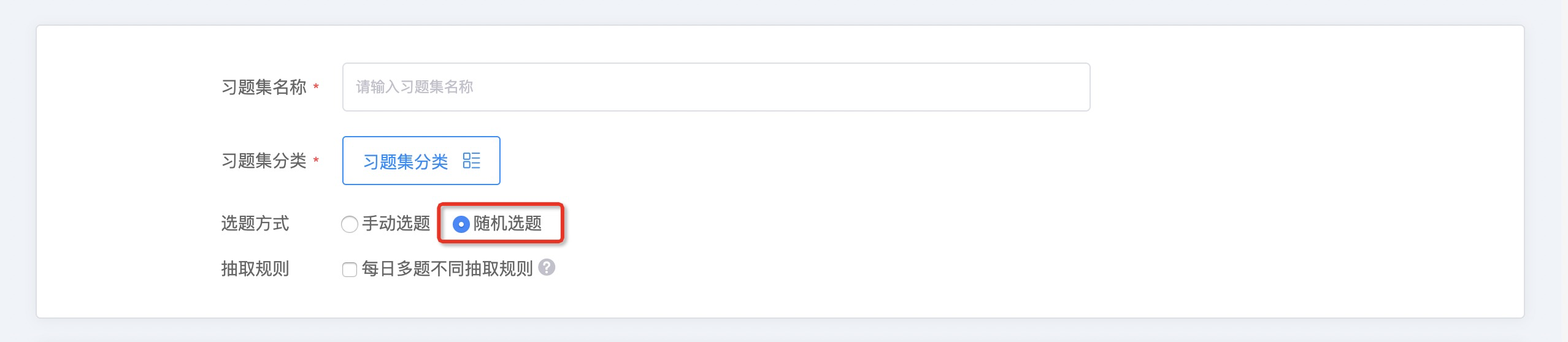 >[danger] 注意:抽取题数必须等于推送的总题数,否则将无法发布练习;