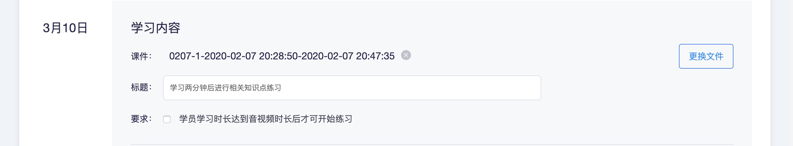 设置学习内容,添加相关的课件附件和说明信息,支持学习后练习,
