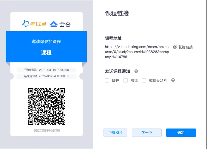 **Step4**:发布课程,参与学员可在学员端看到课程,管理者也可以把课程链接发到社交平台让学员参与,或者给学员推送通知