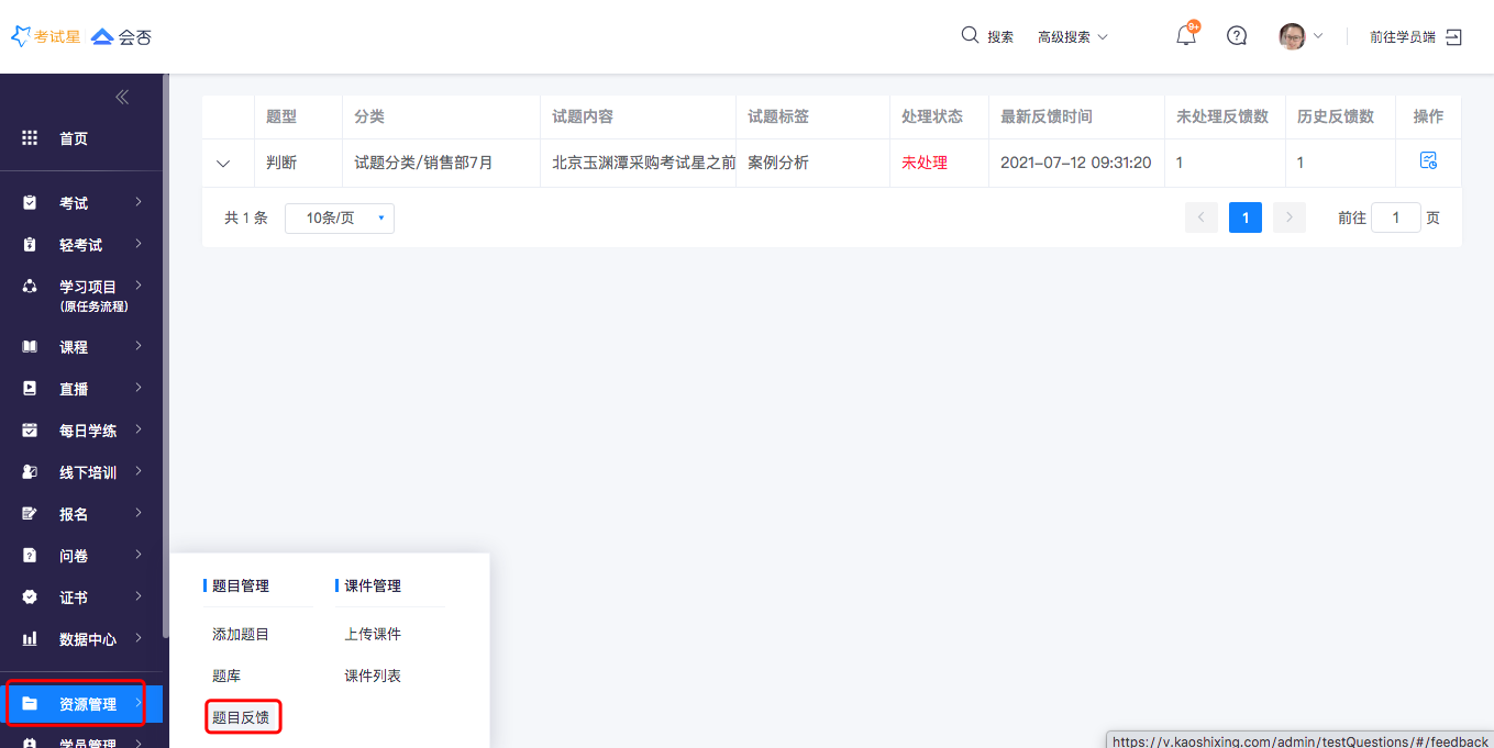 * 标记为已处理:处理某一道题的反馈时,标记为已处理则代表已经把这道题的反馈都处理完毕,并且系统会记录操作人