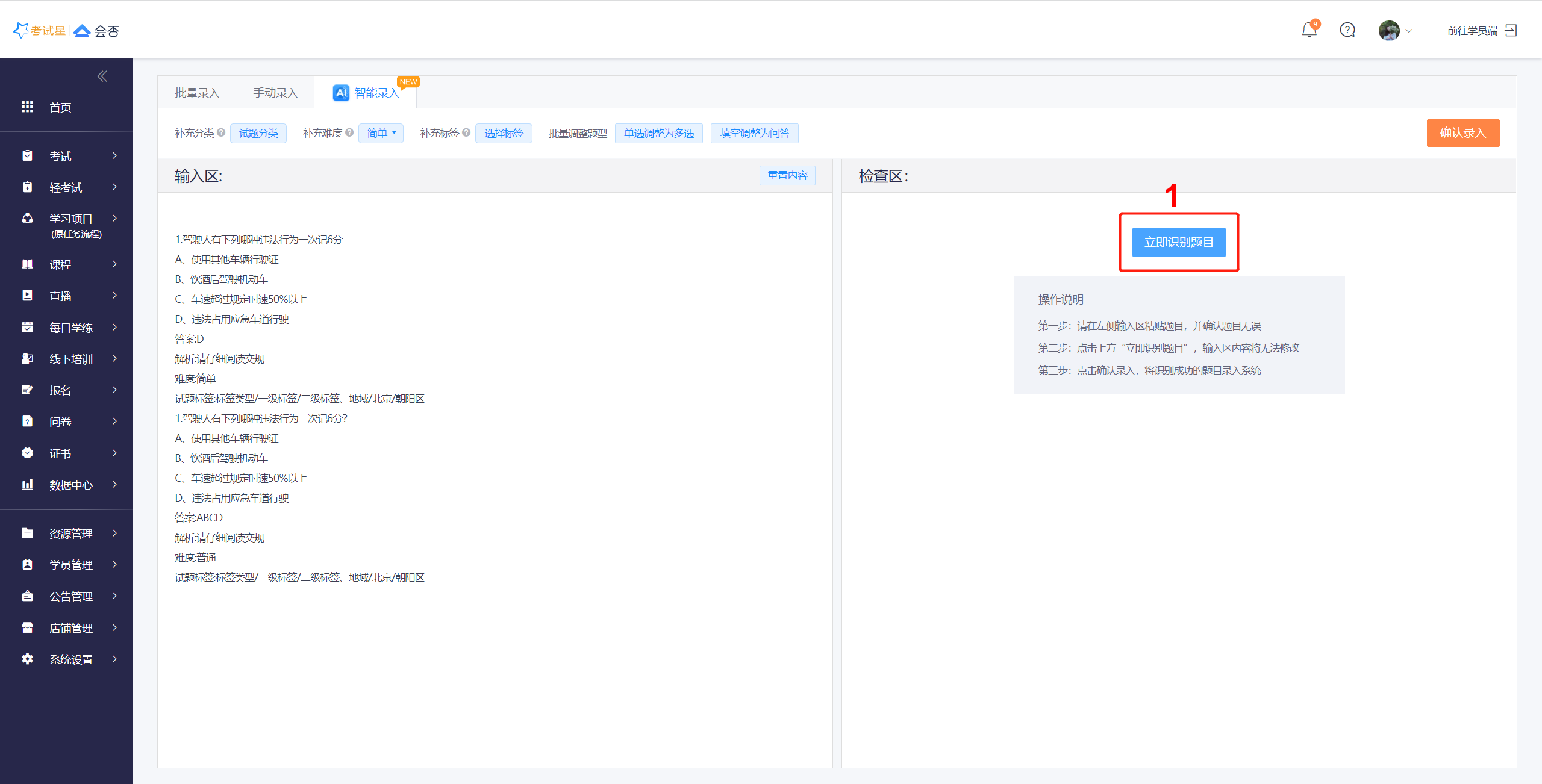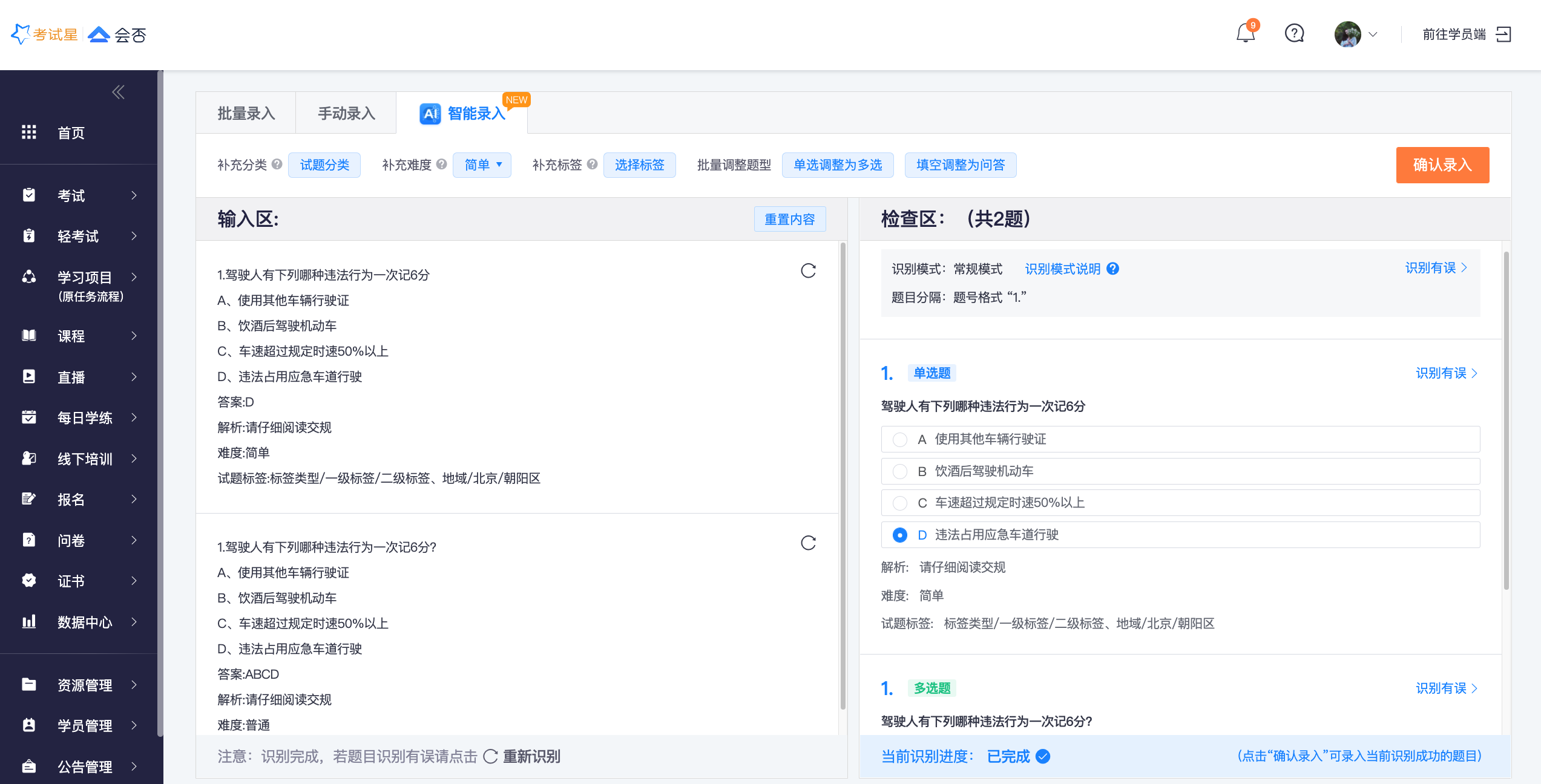 若您已经有了自己成熟的题目管理体系,对于各类题型有统一的规范,推荐您使用智能录题!