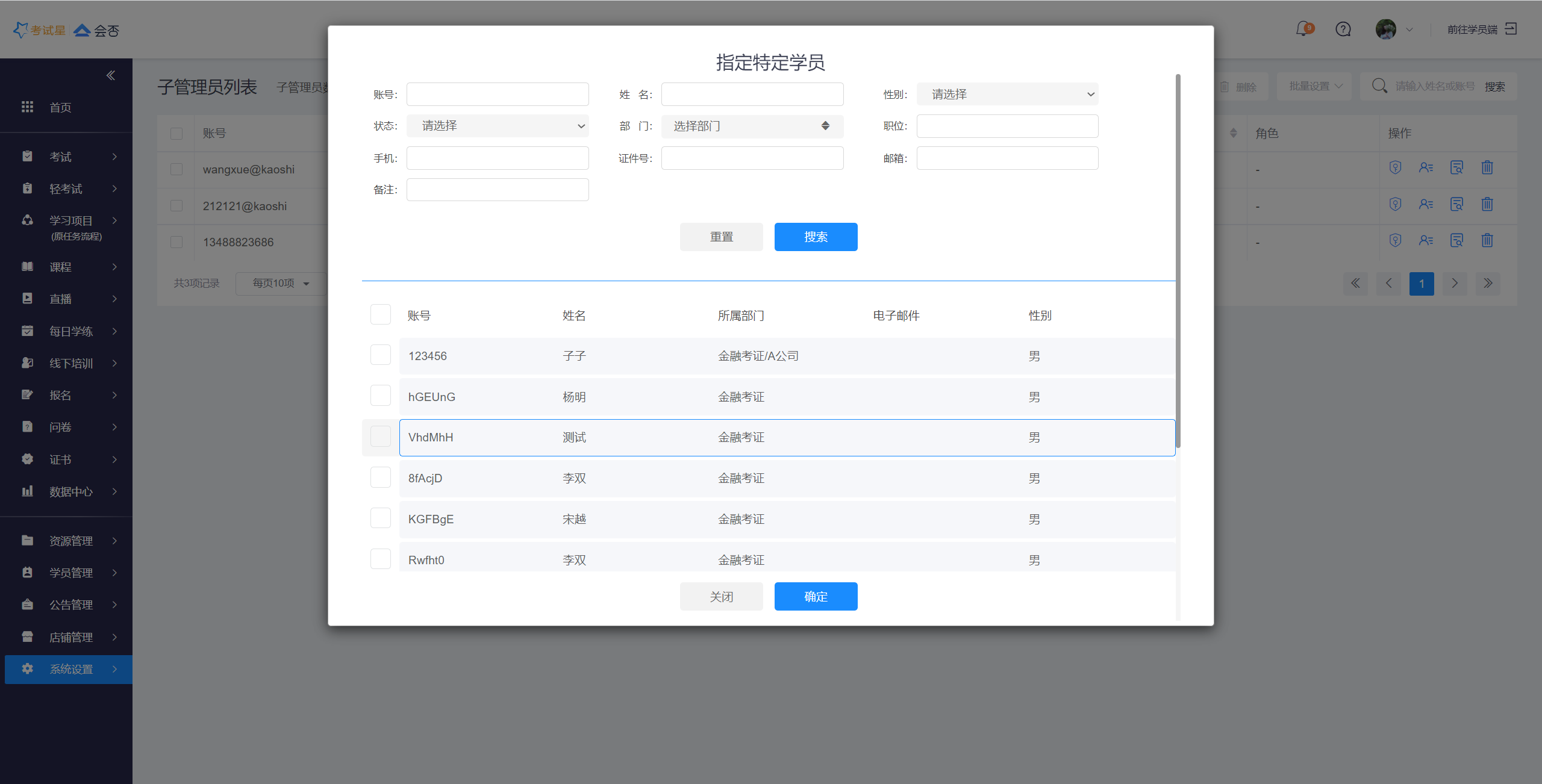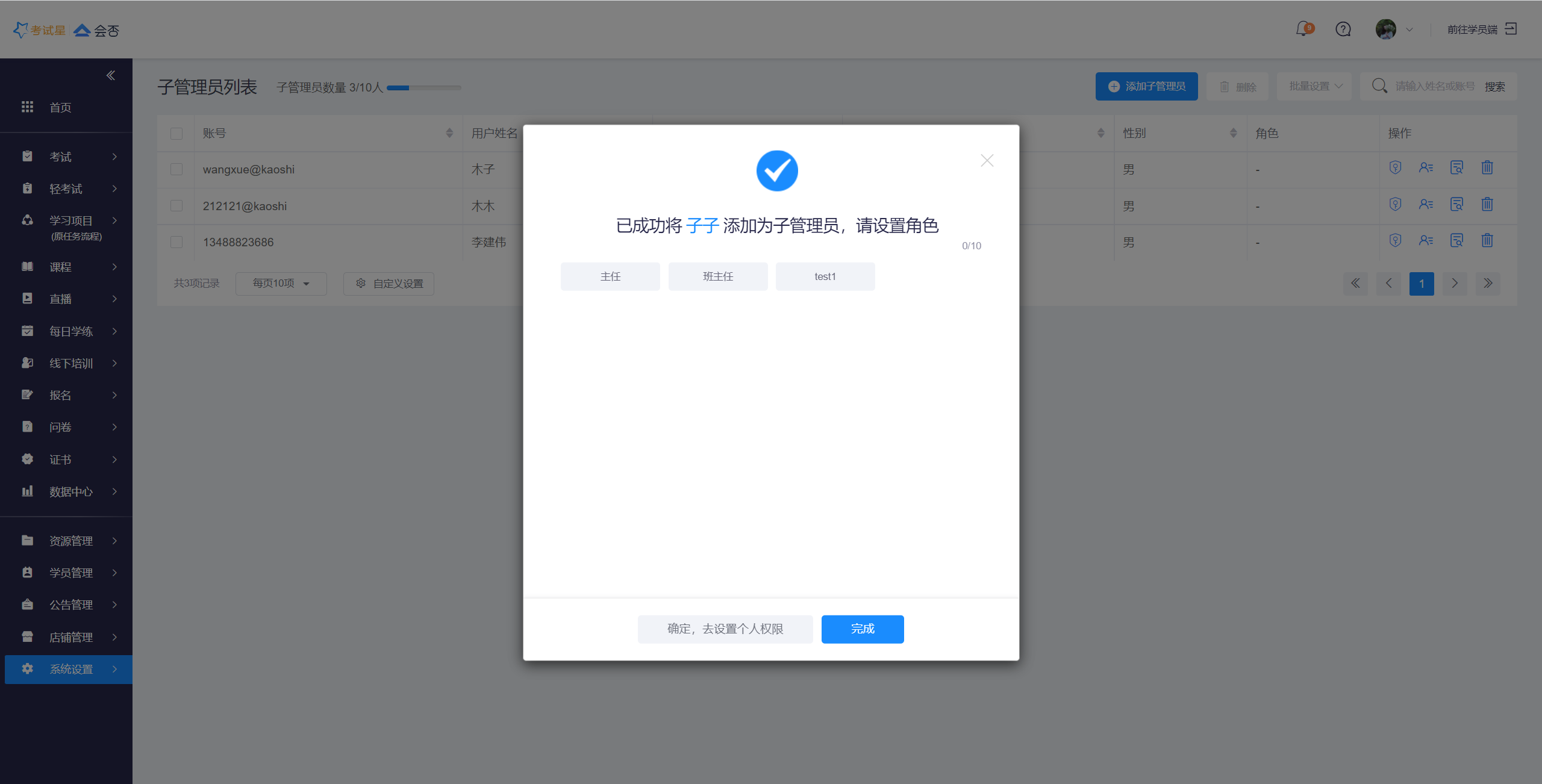 - 注意:被添加为子管理员的人,必须提前在系统中存在账号