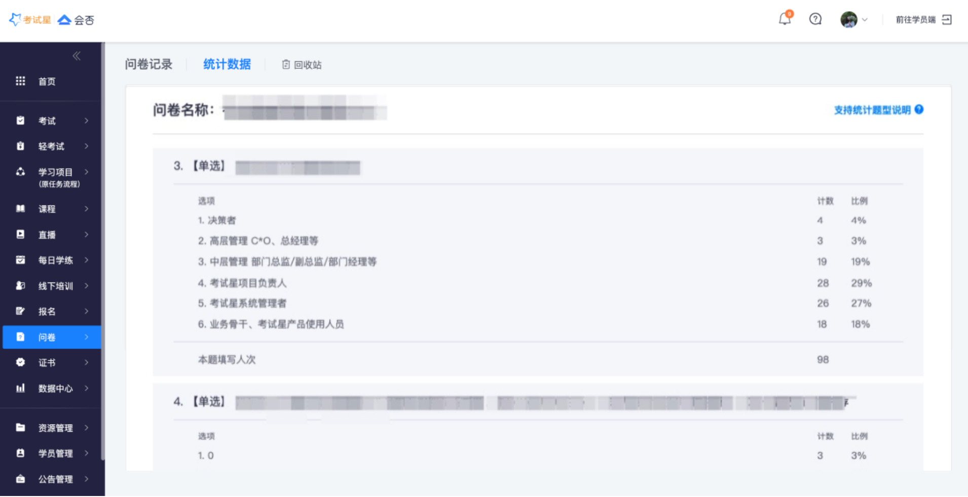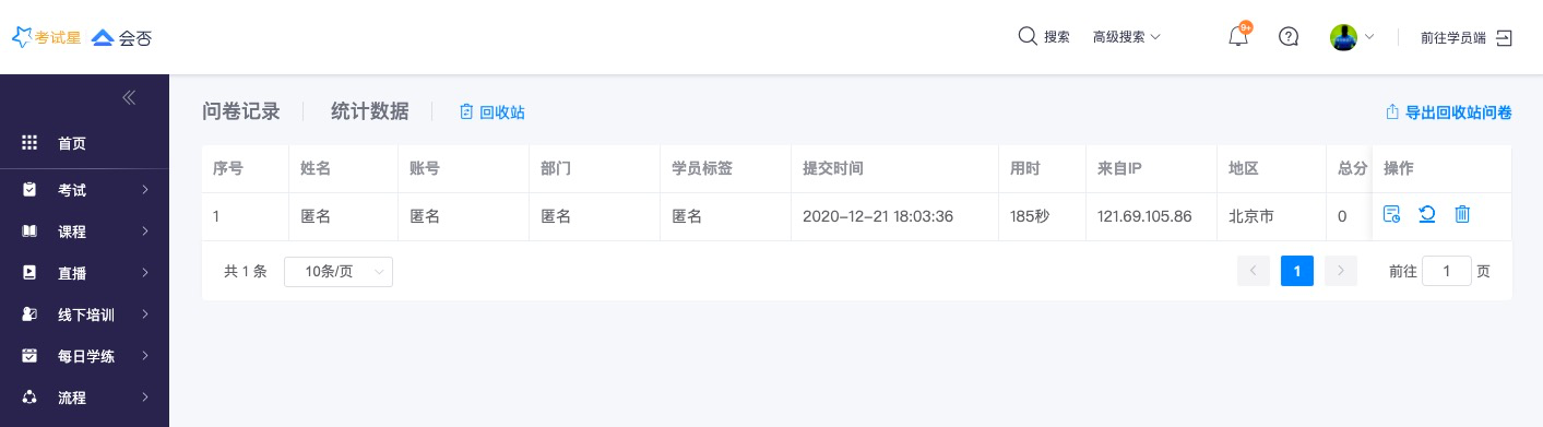》匿名问卷:匿名提交的问卷将永久标记为匿名,管理员不可查看学员信息