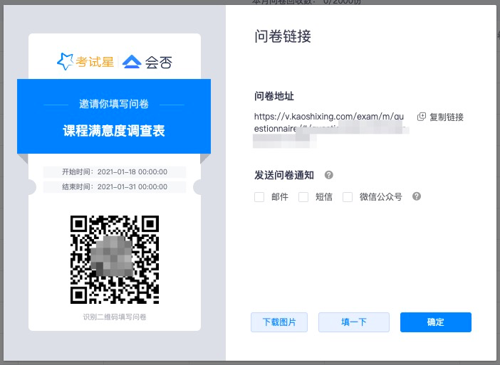 * 通过二维码和链接,学员都可快速填写问卷(学员也可以通过进入学员端填写问卷)