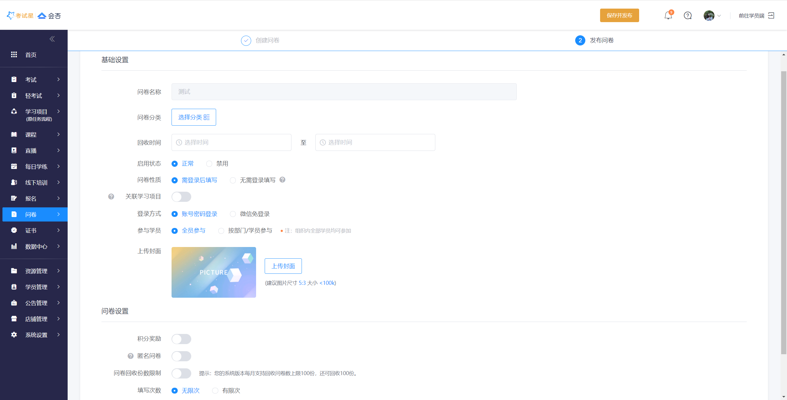 **Step2**:问卷基础信息设置