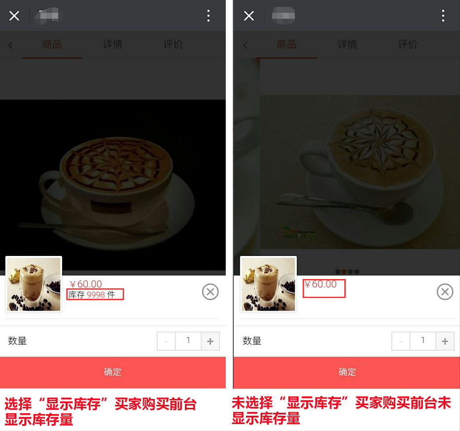 点击选择“显示库存” ,买家直接购买商品或加入购物车时可查看到库存量,反之则看不到,参见下图: