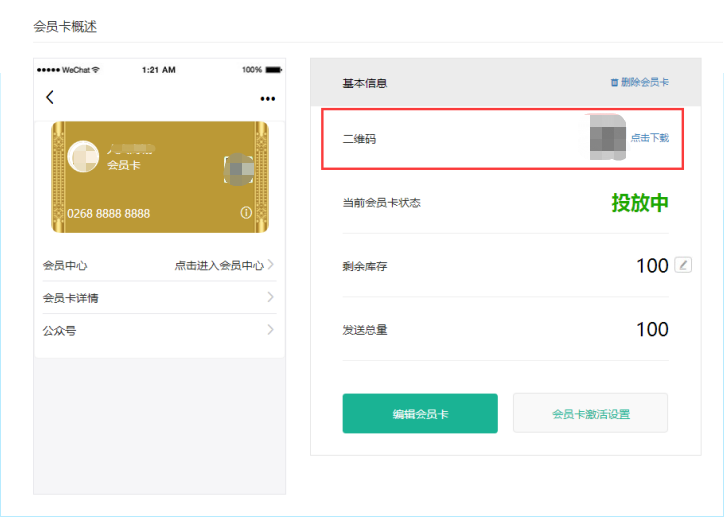 * **会员卡领取:**设置开启,则可以在会员中心领取会员卡,设置关闭则不支持在会员中心领取